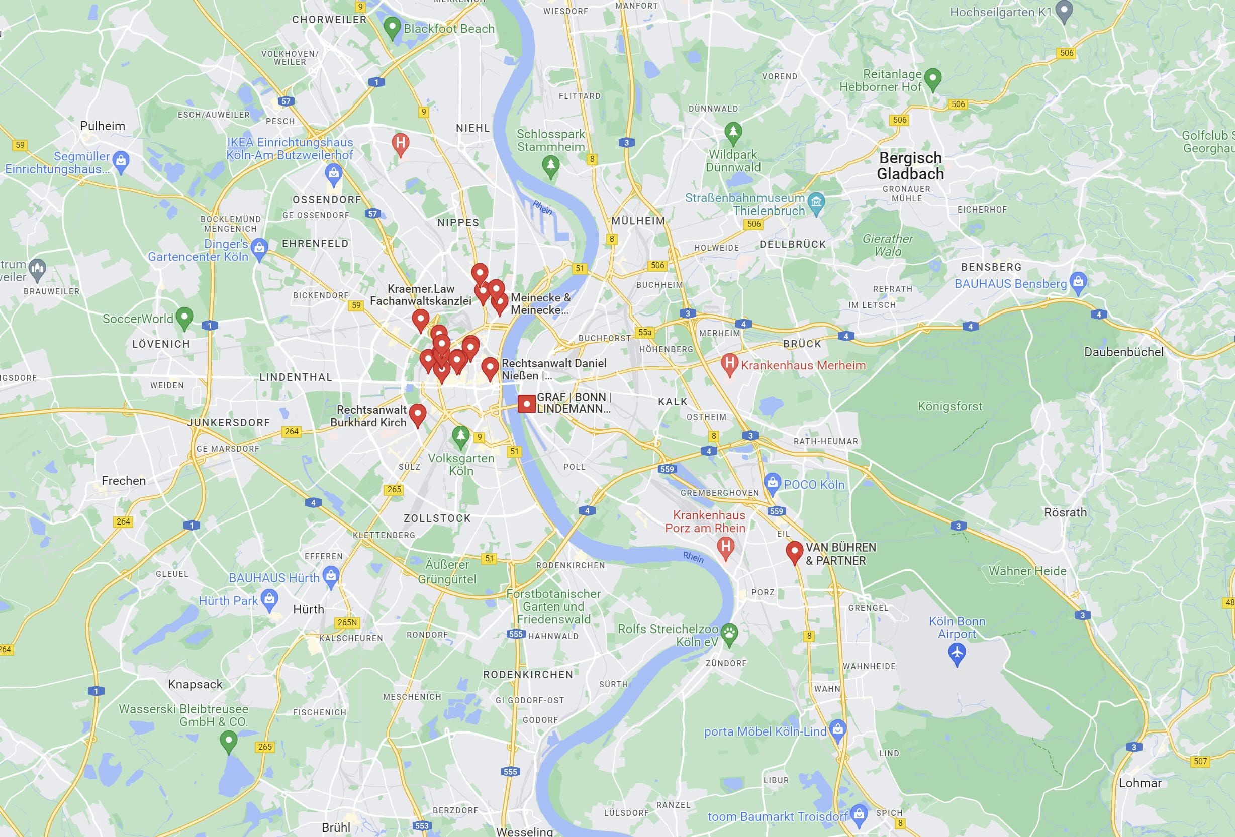 Die gute Nachricht: In unserem großen Experten-Netzwerk finden sich für die meisten Streitthemen ausgewiesene Juristen in Großstädten wie Köln, die sich für Ihre Ansprüche gegenüber Versicherern einsetzen können. Siehe auch: Rechtsanwalt für Versicherungsrecht in der Nähe finden.